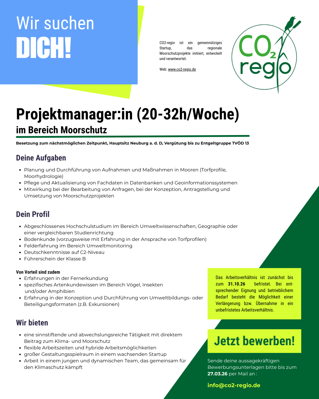 Wir haben dein Interesse geweckt? Dann sende uns deine Bewerbungsunterlagen bis zum 27.03.26 per Mail zu: